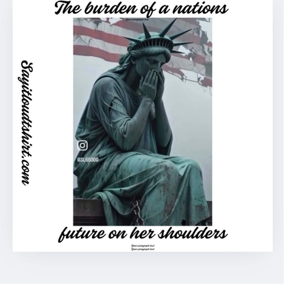 This T-shirt displays Jesus Christ pulling back the curtain. which is made of the American flag. "One Nation Under God".